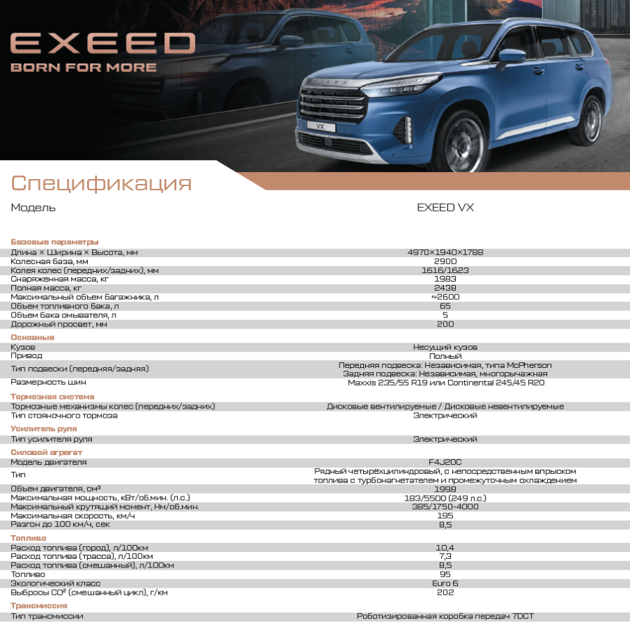 Exeed VX4100000 руб.3850000 руб.В корзинуХарактеристиЦена в долларах-48000$VX top version 2023 анг.язык-55500$